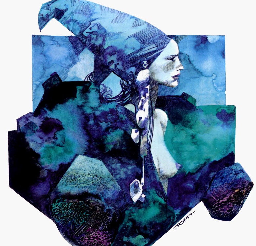 Entrer dans l’univers de Toppi, c’est comme lire les formes dans les nuages, imaginer un visage dans une montagne, chercher entre les lignes d’un dessin somptueux les détails cachés ou inconscients laissés comme des indices d’un imaginaire bien réel. A 80 ans, le dessinateur milanais compte parmi les plus grands maîtres de la bande dessinée italienne. Moins connu qu’un Hugo Pratt, de la génération d’un Guido Crepax, Toppi a commencé sa carrière dans les studios d’animation des frères Pagot, les créateurs du célèbre Calimero. Illustrateur et auteur, protégé de Dino Battaglia dont il était devenu l’ami, Toppi collabore dans les plus grandes revues italiennes, Sergent Kirt, Corto Maltese, Linus ou encore Alter Alter et se démarque peu à peu par un style unique directement identifiable.
