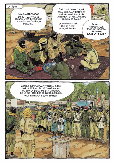 Au lendemain des attentats de Paris, je relis les reportages que Didier Kassaï publiait dans la Revue dessinée en 2014. Dans un épisode (n°2), il raconte comment surpris par une fusillade en pleine rue, il s’enferme avec d’autres passants dans des toilettes publiques. Il attend pour sortir, coincé là, que les coups de feu cessent, toute une matinée. Cette histoire, c’est aussi celle que j’ai pu lire dans les récits des rescapés du Bataclan. Cette histoire, c’est celle de nous tous confrontés à une telle situation. Mais ce qui est impensable pour nous, l’est aussi pour les autres. La RCA régresse dans les indices de développement humain, ces faits sont gravissimes. A l’heure du bilan des deux ans de l’Opération Sangaris, dans la perspective des élections prochaines, la RCA mérite notre attention. Quelle influence la France exerce-t-elle dans ce pays, quel doit-être son rôle dans ce conflit ? L’actualité surmédiatisée des frappes françaises contre l’EI en Syrie occulte d’autres réalités internationales tout aussi importantes. Il est illusoire de penser dans un monde qui s’est d’abord mondialisé par la guerre, que les conflits soient géographiquement circonscrits et localisés sans interagir entre eux. Les guerres et la misère qui dégénèrent en Afrique produisent des contingents à toutes les milices radicales, que les revendications soient économiques, sociales, politiques ou religieuses, souvent toutes à la fois. C’est le véritable terreau de ce qu’on nommera demain « terrorisme ».