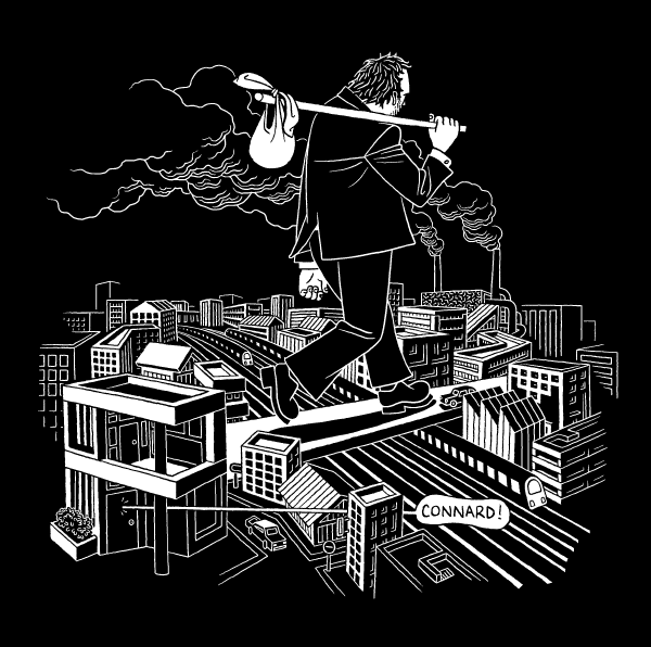 « Connard ! ». La bulle tonne en première page à travers une porte close. De dos, sur un pont, Killoffer s’en va. De situation en situation, les récits d’anecdotes ordinaires compilent les considérations et les observations de l’auteur autour de son sujet favori, lui-même. Sujet incontournable s’il en est.