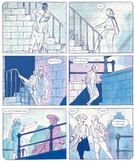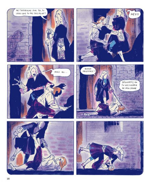 F. R. C’est une période de l’histoire de l’art à laquelle je suis très attaché. La peinture flamande a ce côté naturaliste qui va jusqu’à représenter l’épluchure des pommes de terre. Les Hollandais ont amené le réel dans l’art à une époque où prédominait largement la peinture religieuse. Le plus fascinant c’est qu’à travers les éléments du quotidien, ils ont développé tout un langage symbolique. Quelques indices glissés dans l’image recomposent une histoire avec la laisse coupée d’un chien, un lit ouvert, une carafe, un fruit. C’est une peinture qui raconte, à condition de savoir décrypter le texte. S’emparer d’un tel univers en BD, c’est toujours une manière de vivre l’aventure à travers son personnage. Le pouvoir essentiel du dessin amène à explorer au-delà de tout ce qu’on peut expérimenter dans le réel. Le geste même de dessiner met toujours en tension le désir, l’inconscient, l’instinct et les pulsions, l’amour et la mort.