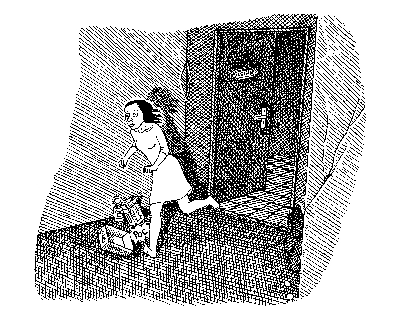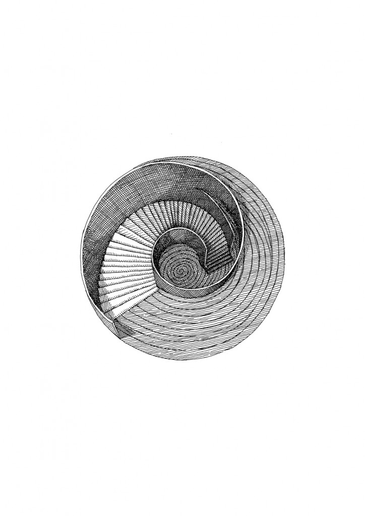 Dans ce nouveau recueil La Maison Circulaire, le changement de style, tout en hachures, éclaire un trait plus précis, plus fouillé, qui raffermit la densité d’un propos toujours plus vrai, c’est à dire dépouillé des formes d’interprétations, de rationalisations réconfortantes ou angoissantes que la conscience recompose au réveil. Cet entendement à posteriori fausse et censure l’étrangeté et la primitivité du rêve. Dans ce nouveau recueil, les thèmes restent les mêmes, il s’agit d’explorer à l’intérieur du rêve l’espace imaginaire, d’en garantir l’étrangeté, d’en retranscrire les parcours sinueux, l’errance qui conduit tantôt dans une maison circulaire, un appartement, un atelier, tantôt dans des escaliers, des couloirs ou encore dans la rue, à travers la ville. Les projections mentales s’abreuvent autant du vécu que du désir. Tout dans le rêve se reflète en miroir. Le thème du double, omniprésent dans l’œuvre de Rachel Deville et lié à sa sœur jumelle, se libère. Multiplié à l’infini, devenu absolu, il s’impose naturellement comme un nouveau langage.