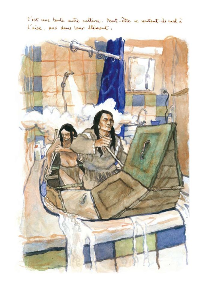 GUILLAUME TROUILLARD : J’ai une fascination pour les amérindiens et leur culture mais je n’ai jamais eu encore la chance de voyager sur le continent américain. Dans l’idée de Samuel, c’est plutôt le côté absurde, le décalage avec le couple de retraités charentais qui nous a plu. On a pioché dans toutes nos références pour nourrir le récit, du western aux récits anthropologiques. A l’origine, Samuel s’est même inspiré de la vie de certains de ses proches qui dans les années 70, se sont retrouvés à vivre sous des tipis en Ariège.