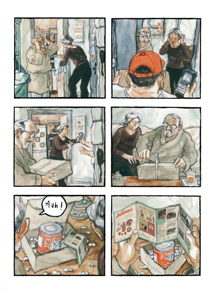 On nage en plein délire. Entre réalité et fantasmes du monde moderne, la narration à tiroirs tisse joyeusement les fragments incohérents d’anecdotes surréalistes, imbriquées dans une logique absurde et signifiante. L’histoire, taillée dans les mises en abyme graphiques et les jeux de miroirs, joue sur le décalage entre un couple de paisibles retraités charentais, bienveillants et bien-pensants, amenés à cohabiter avec une famille de Peaux-Rouges. Sioux, Comanche, Apaches ou Albanais, on ne sait pas très bien l’identité de ces Indiens en conserve.