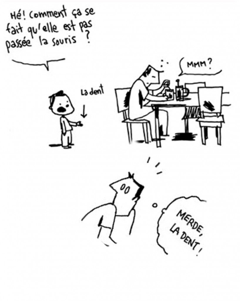 Guy Delisle se lâche. Le Québécois, qui a reçu l’an dernier le Fauve d’or du meilleur album pour Les Chroniques de Jérusalem, dévoile un nouveau visage dans un petit album édité chez Delcourt. Une succession d’anecdotes sur son quotidien de papa. Oublier la petite souris, traumatiser son fils avec une tronçonneuse, cacher les céréales pour les siffler en douce, critiquer le dessin de sa fille et la comparer à un “punching bag” dans les yeux de son frère. Les situations potaches se multiplient et le lecteur passe un bon moment, trop court sans doute, car les graphismes minimalistes à raison de deux dessins par planche amènent une lecture rapide de ce petit opus horripilant. Qu’importe, loin du sérieux du reportage qui avait fait la qualité des bandes dessinée de Guy Delisle sur Israël, la Corée du Nord et la Birmanie, le dessinateur assume bien cette tonalité plus légère dans ce Guide du mauvais père propre à décomplexer tous les parents.