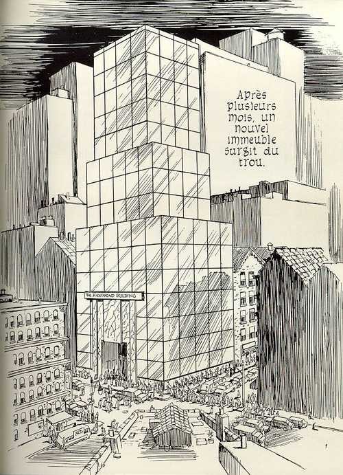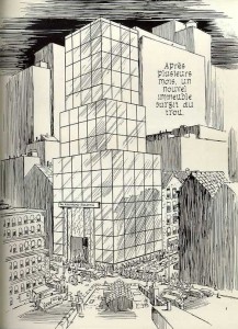immeuble“Dans la grande ville, une vallée formée par deux rangées égales de falaises d’habitations de béton et de métal, s’appelle un bloc. Pour ses habitants, c’est l’univers !”Quand il a créé cette Trilogie, en 1981, Eisner ne travaille plus pour la presse et enseigne alors à l’Ecole des Arts Visuels de New York. Assemblage disparate d’historiettes plus ou moins longues, muettes ou éloquentes, l’ensemble forme un tableau vibrant du quotidien newyorkais. Une série d’instantanés nés des pérégrinations du dessinateur dans sa ville, en collecteur insatiable de témoignages visibles et invisibles. L’œil du virtuose attendri perce les secrets du grouillement des âmes et les textes servent avec poésie aux allégories de ces héros anonymes. “Dans la ville, c’est facile ; les individus qui constituent le tissu mouvant et homogène de l’humanité sont invisibles aux yeux les uns des autres” écrit-il. Une partie de cache-cache avec New York comme héroïne, où le dessinateur scrute chaque fenêtre comme pour ouvrir autant de lucarnes sur la vie et l’humanité. Trois tomes : la Ville, l’Immeuble, les Gens. Autant de portraits pour une ville perçue comme une architecture humaine protéiforme où se superposent toutes les grimaces et les sourires des vivants et des morts. Ressuscitant les fantômes du flatiron,  Eisner restitue le charme de la ville sans complaisance, avec humour et réalisme, appréhendant les immeubles construits et démolis comme autant d’entités vivantes. Cette trilogie offre ainsi une déambulation magique au cœur de New York, la reine des villes, qu’il a appris à aimer, en apprenant à la dessiner telle qu’elle est.