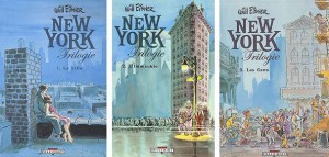New York, la Trilogie, Will Eisner, 141 pages, Delcourt/Contrebande T1, La ville, T2 L’immeuble et T3 les gens, 14,95 euros chaque